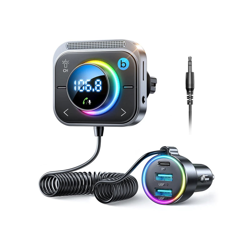 Bluetooth 5.3 FM Transmitter with AUX, Bass Boost, and Fast Charging Ports