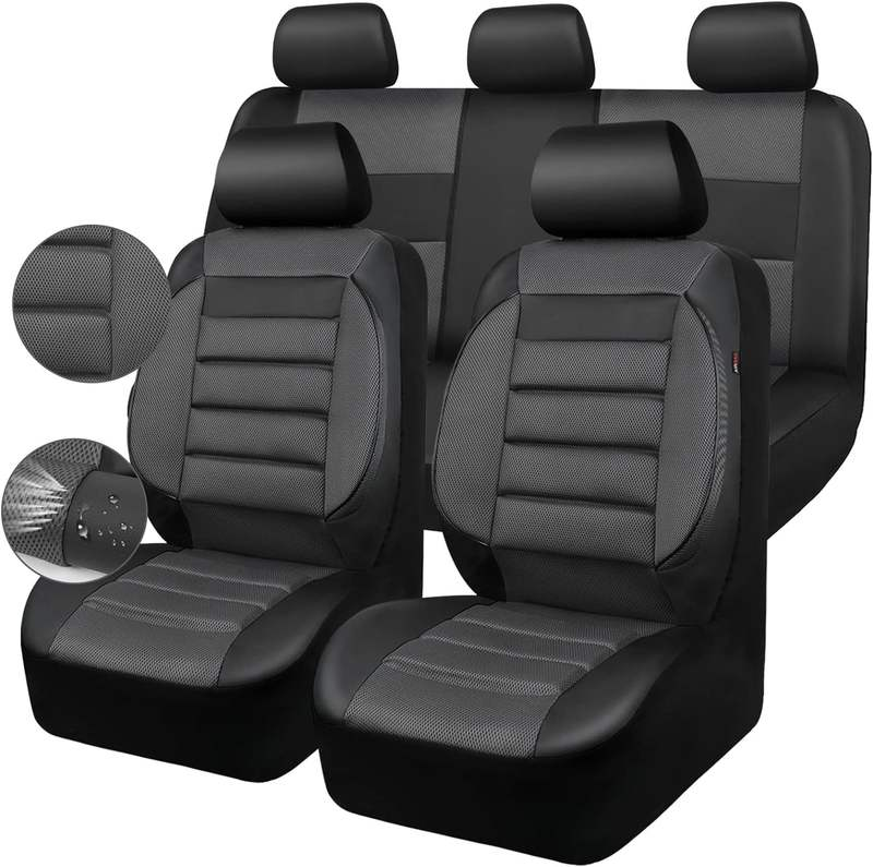 Leather Car Seat Covers with 3D Foam Back Support and Air Mesh