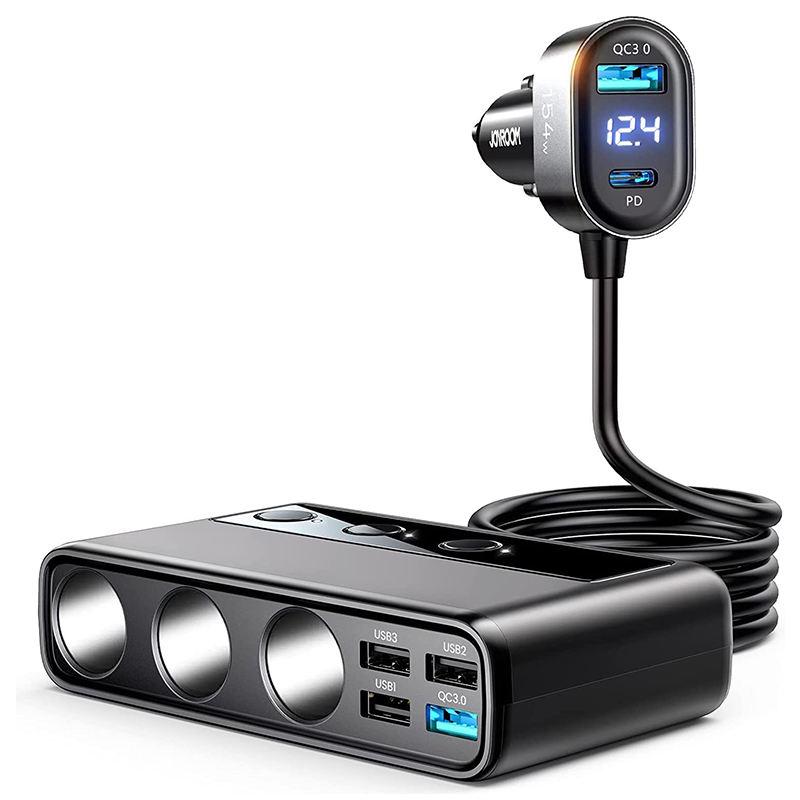 154W 9-in-1 Car Charger Adapter with 3 Sockets, 6 USB Ports, Fast Charging