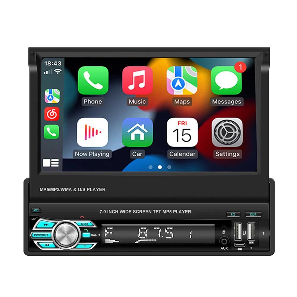 7" Retractable Touchscreen Car Stereo with Wireless CarPlay, Android Auto, and Backup Camera