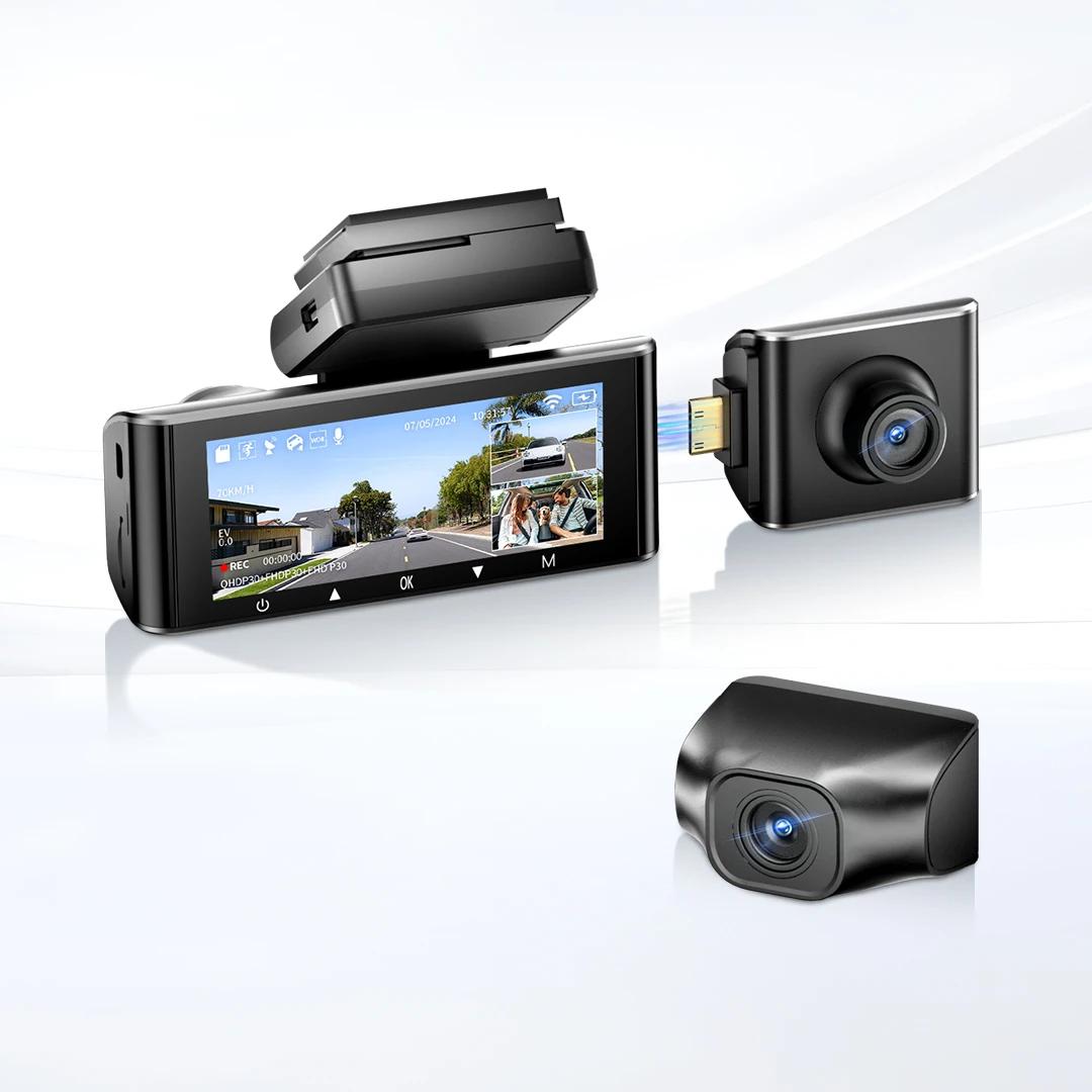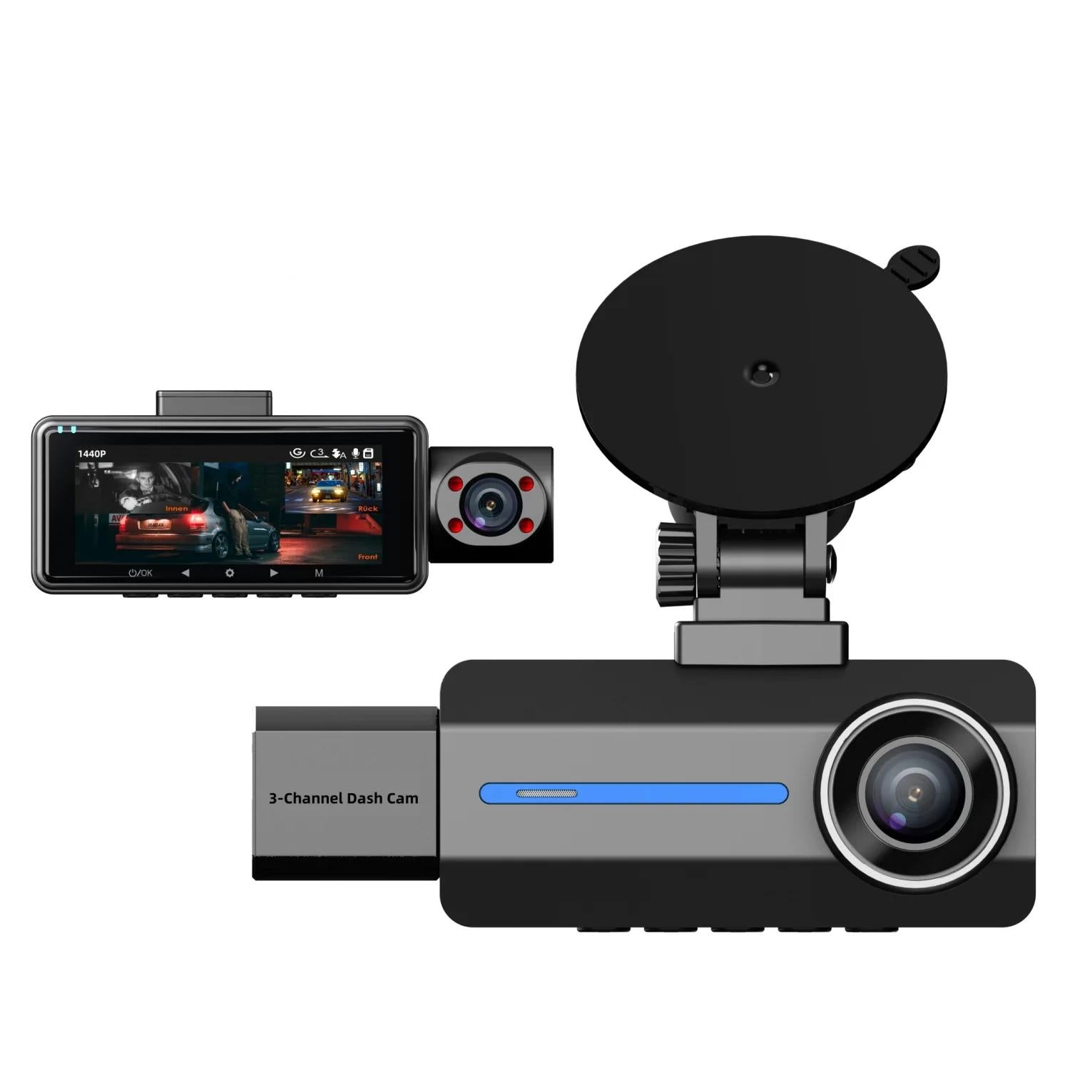 3-Channel 2K HD Dash Cam with Front, Rear & Inside Recording, IR Night Vision