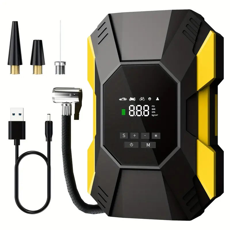 Portable Electric Tire Inflator Pump with LED Light for Car, Motorcycle, and Bicycle
