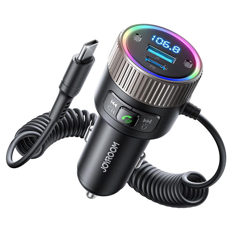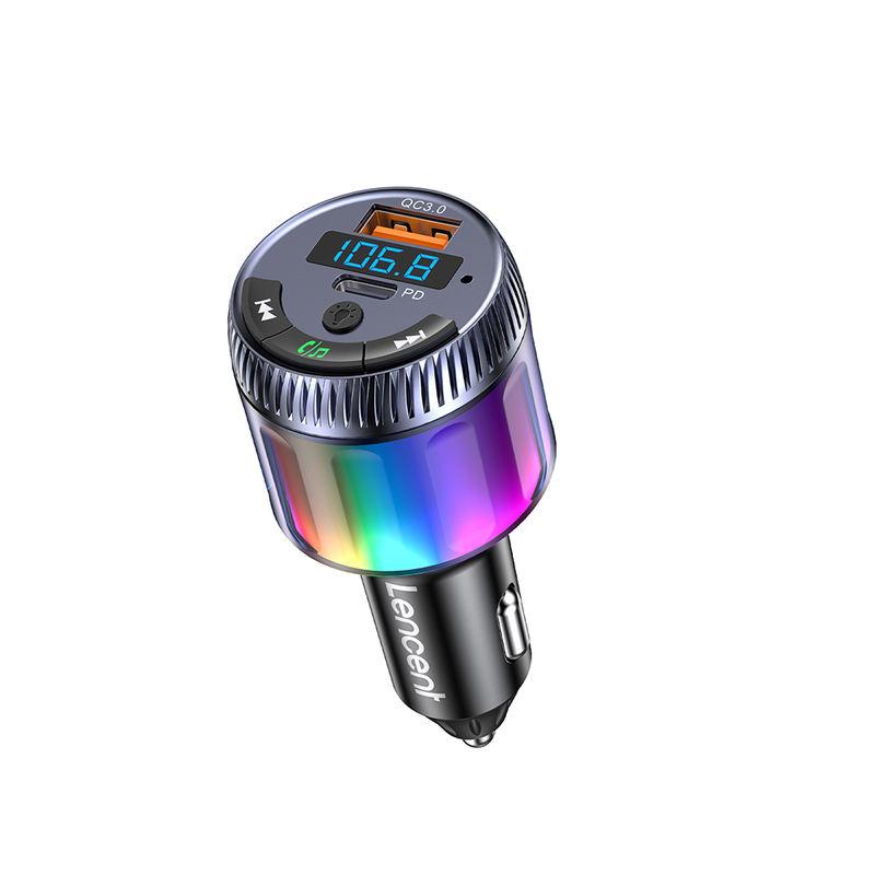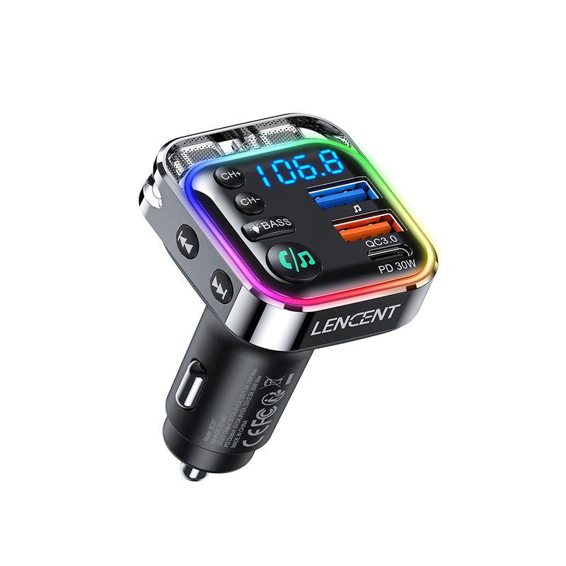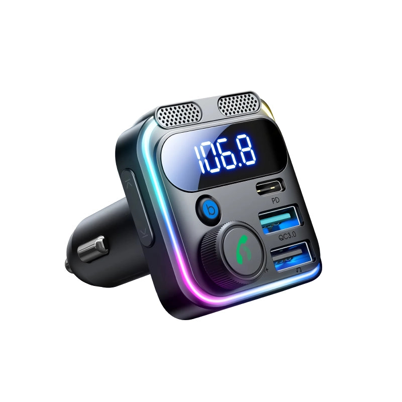 Bluetooth 5.3 FM Transmitter with PD 30W & QC 18W Fast Charger, LED Ambient Light