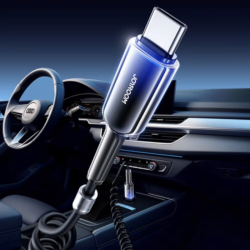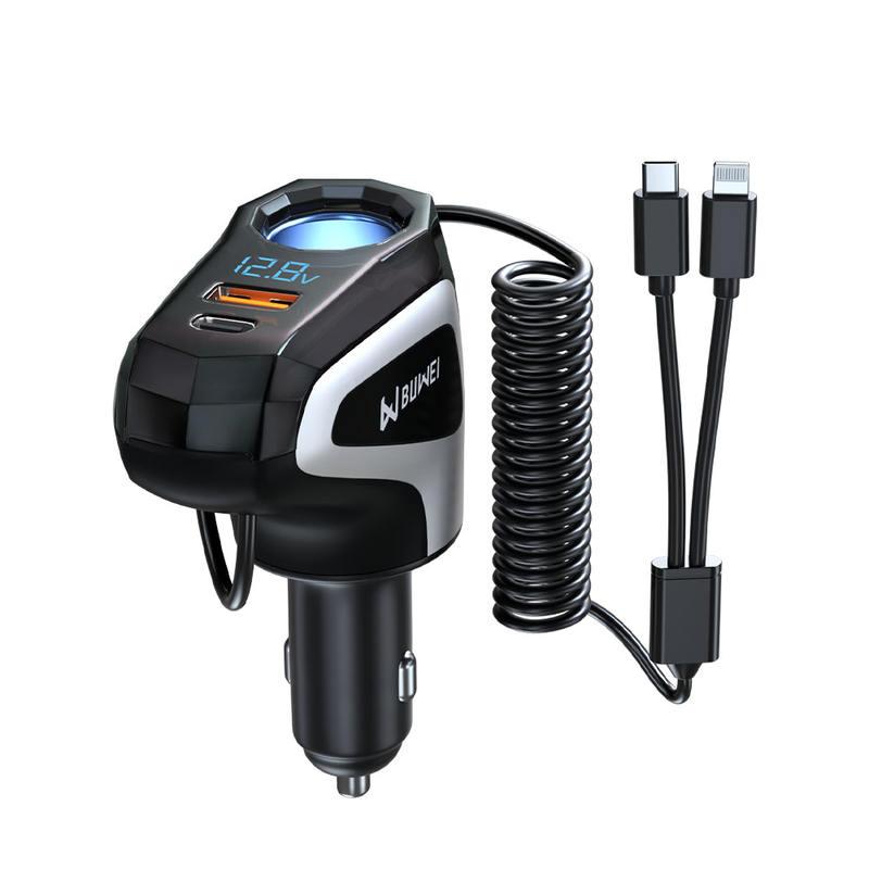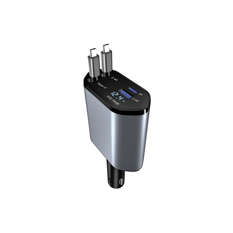 120W 4-in-1 Retractable Car Charger with USB-C and Dual USB Ports for iPhone & Android