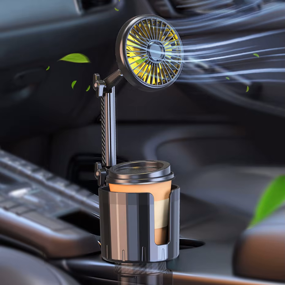 2-in-1 Car Cup Holder Fan with Adjustable Cooling and USB Charging