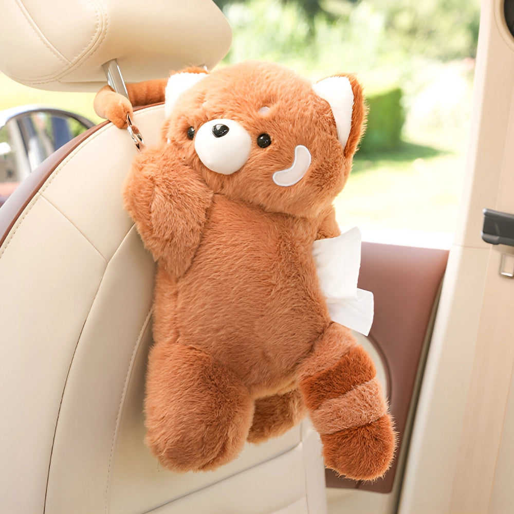 2-in-1 Plush Car Tissue Box & Trash Can - Cute Cartoon Red Panda Design