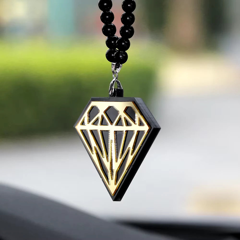 Diamond-Shaped Acrylic Car Pendant Ornament for Rearview Mirror