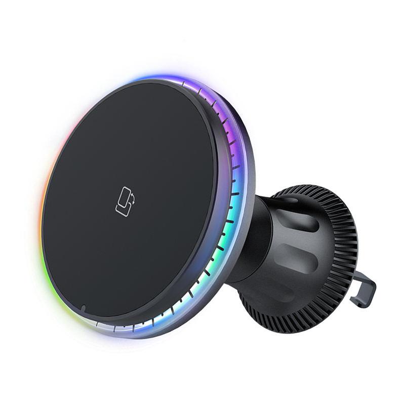 15W Strong Magnetic Car Wireless Charger with RGB Light for iPhone Car Phone Holder Air Vent Stand Fast Charging Dock Station