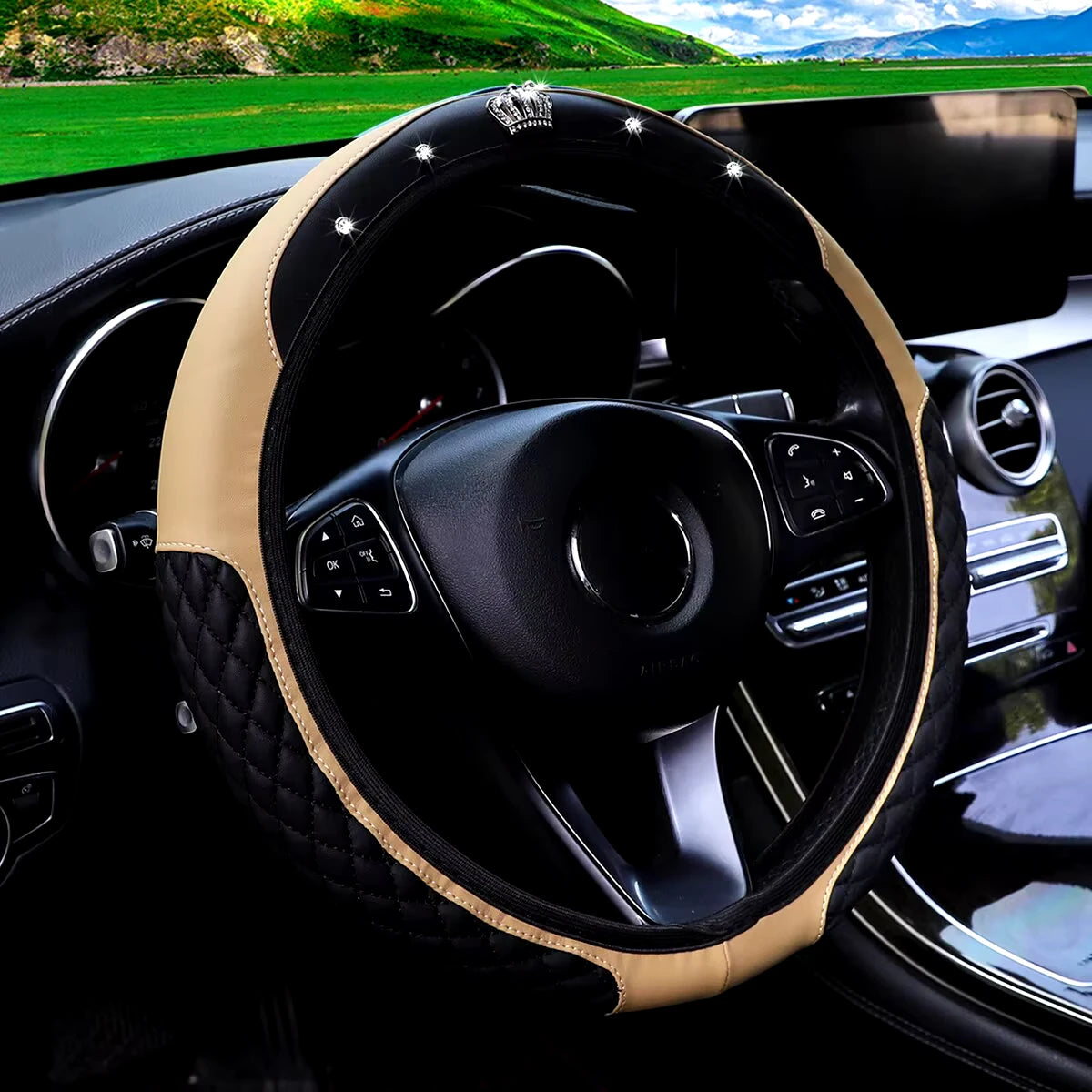 Luxury Leather Diamond Crown Steering Wheel Cover