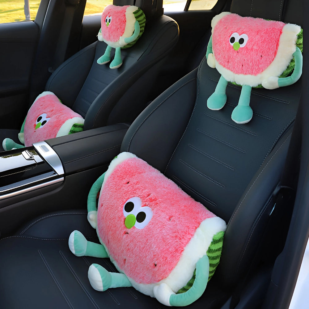 Cute Watermelon Design Headrest & Lumbar Support Pillow for Car Comfort