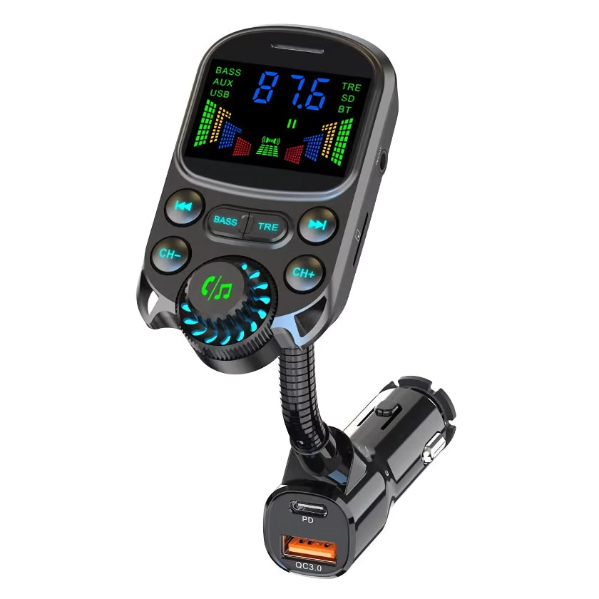 Bluetooth 5.3 Car FM Transmitter with PD & QC3.0 Quick Charging, Aux, and MP3 Player