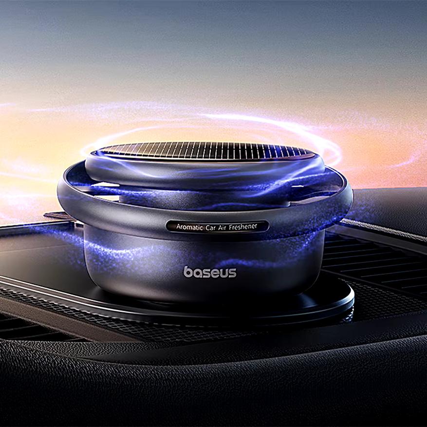 Solar Car Air Freshener with Rotating Aromatherapy Oil Diffuser