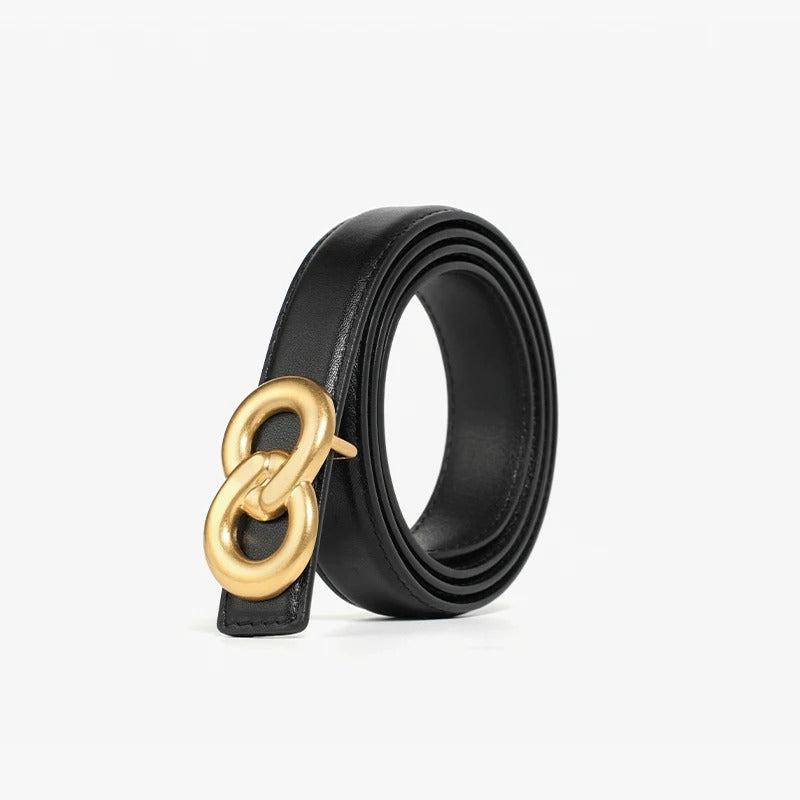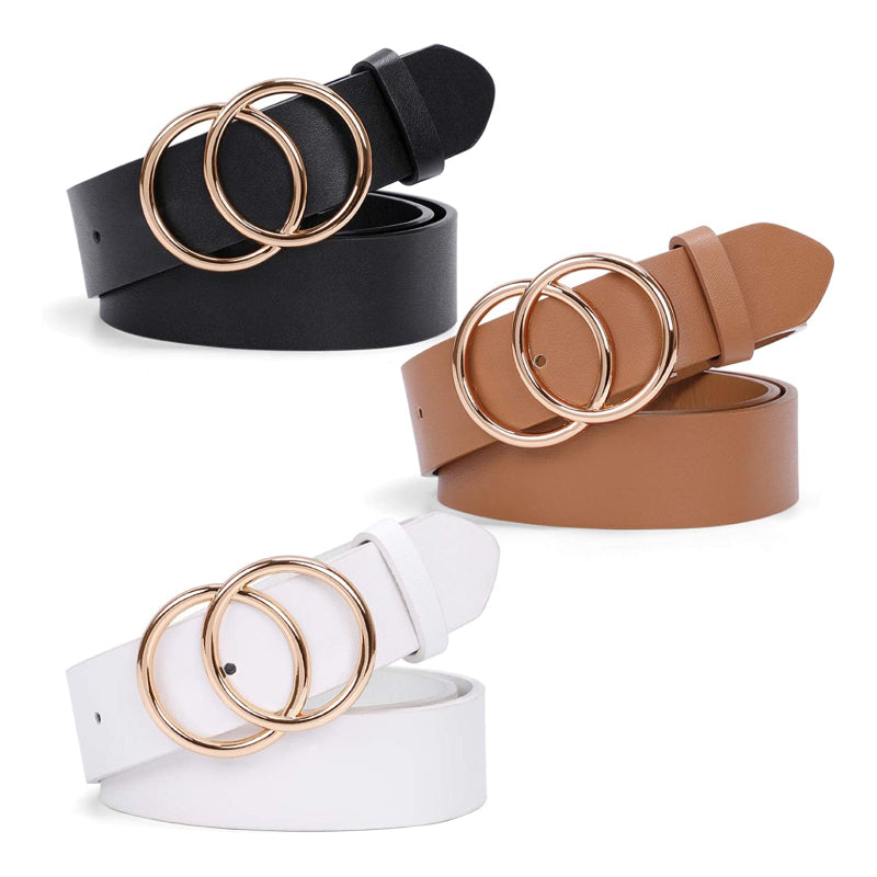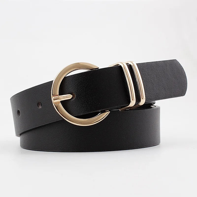Women's Genuine Leather Belt with Gold Double-Ring Buckle