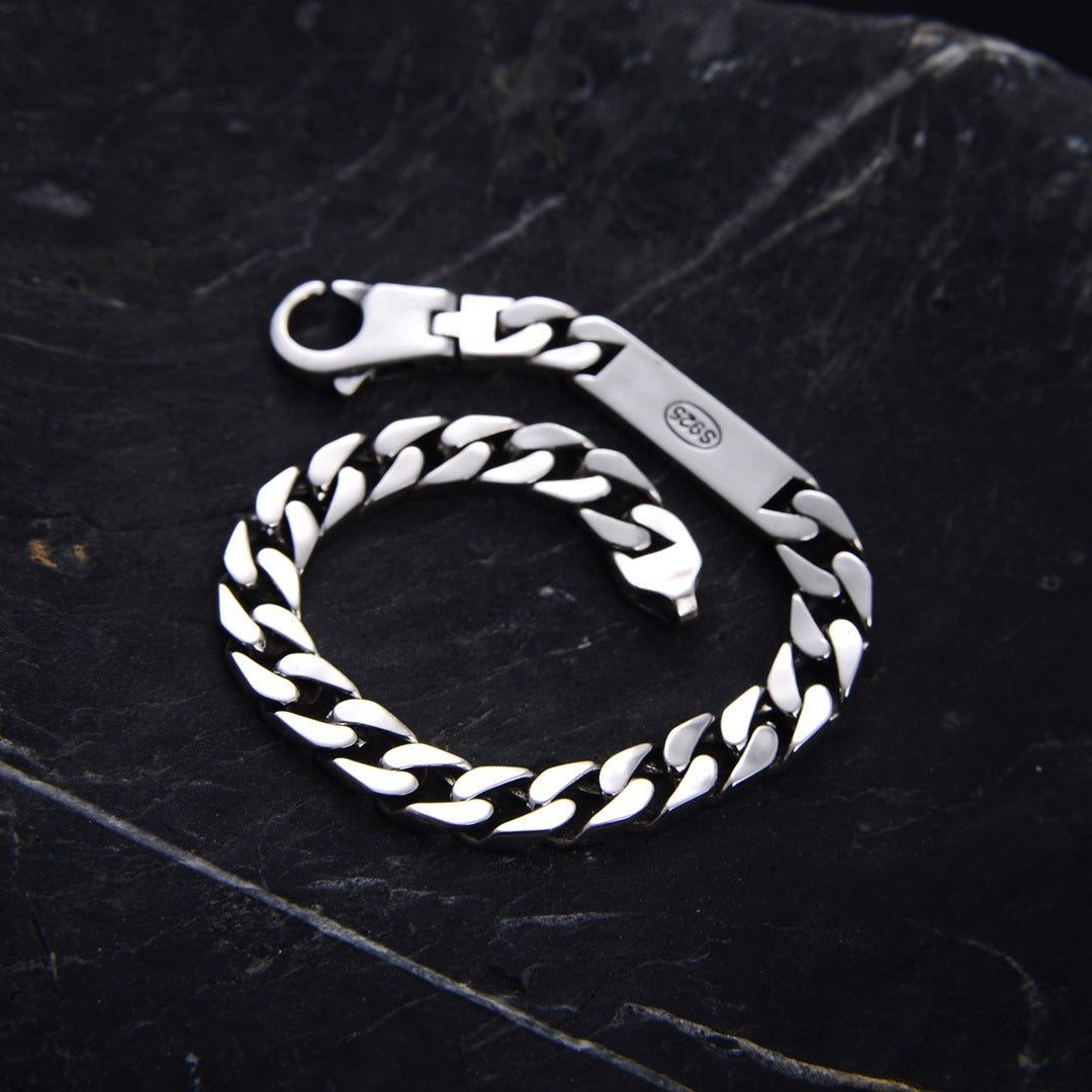 S925 Silver Retro Worn Simple Punk Bare Silver Bracelet