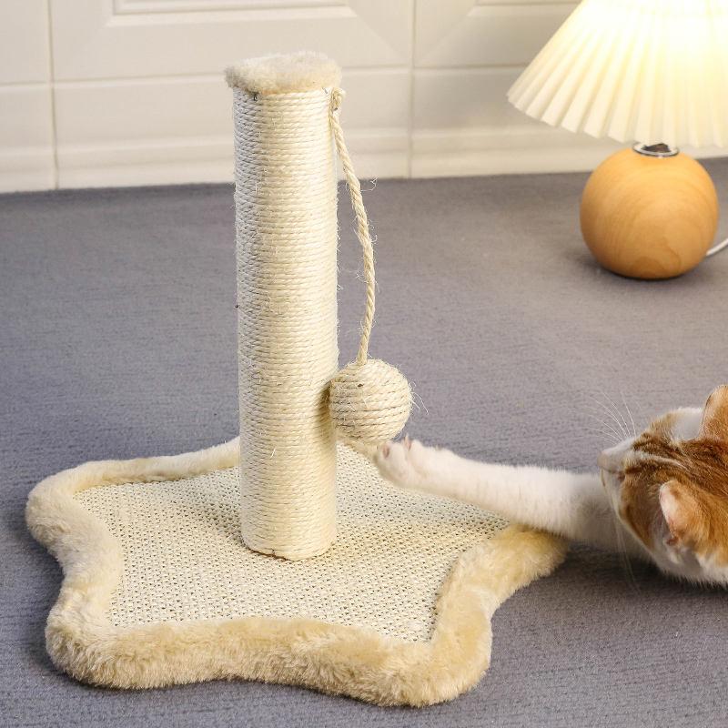 Transform your indoor space into a feline paradise with our Cute Cat Scratching Post! This delightful cat scratcher is designed not only to keep your kitten entertained but also to protect your furniture from those sharp claws. The unique shape adds a touch of whimsy to any room while offering your cat the perfect place to scratch, stretch, and play. Crafted from durable wood and wrapped in natural sisal rope, this scratching post is built to last. The sturdy base ensures stability during playtime, so your kitten can scratch and pounce without tipping over the post. The addition of a playful pompom and a spring toy ball keeps your cat engaged, providing endless entertainment and exercise.Features of the Cat Scratching Post
