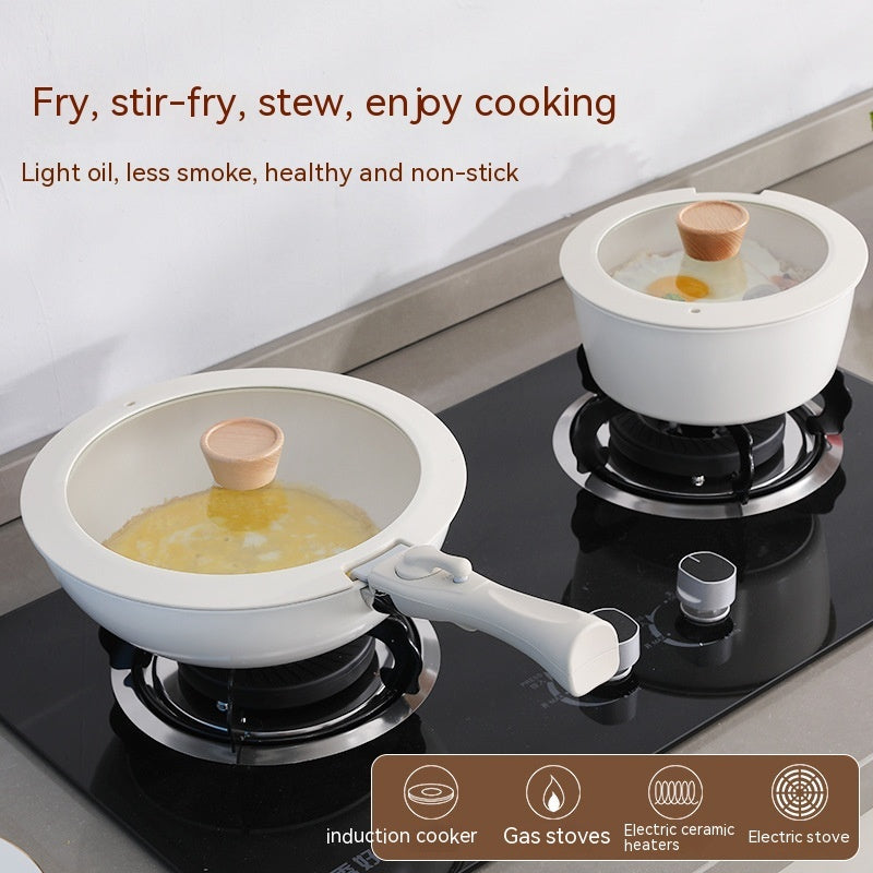 Removable Handle Non-stick Pan Thickened Flat Small White Pot