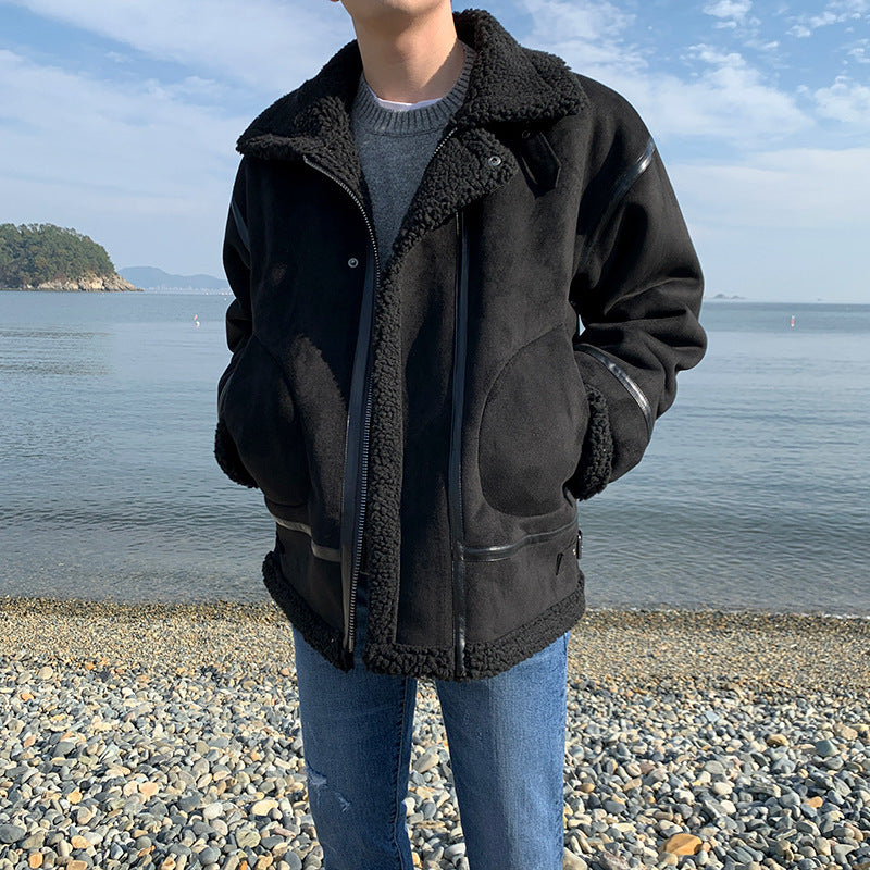 Lamb Cashmere Jacket Men's Winter Thickened Locomotive Suit