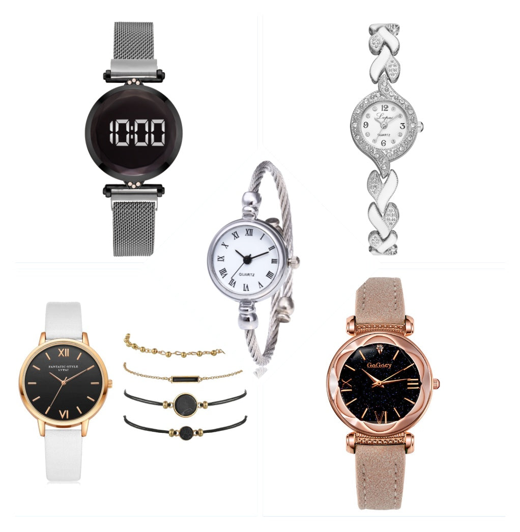 Ladies Watch PU Strap Alloy Quartz Strap Bracelet Set Combination