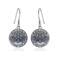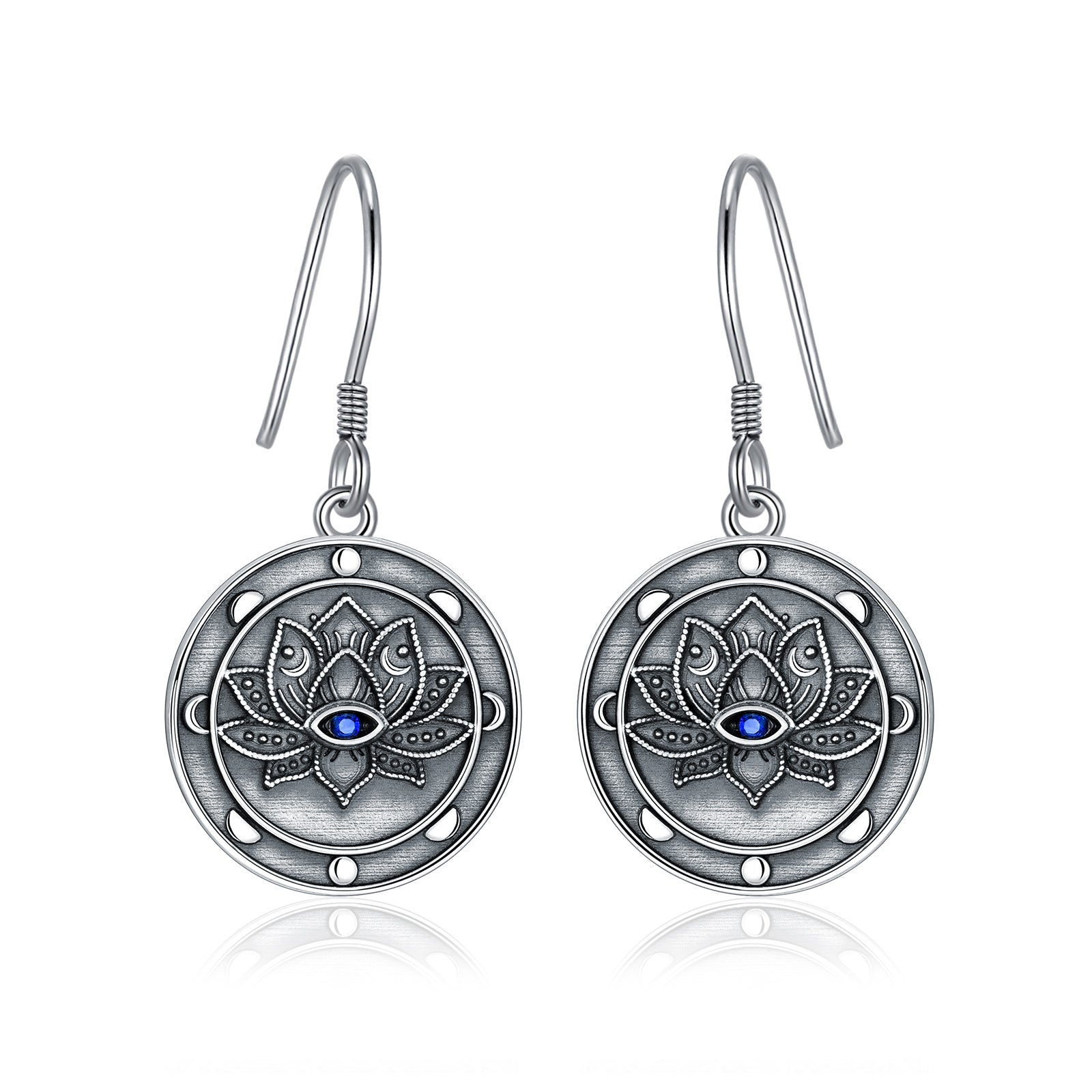 Evil Eye Earrings Sterling Silver Evil Eye Lotus Flower Dangle Drop Earrings Moon Phase Spiritual Evil Eye Jewelry Gifts for Women Girls