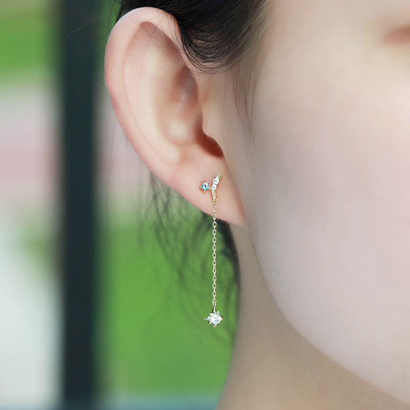 925 Silver Rainbow Star Moon Fringe Earrings