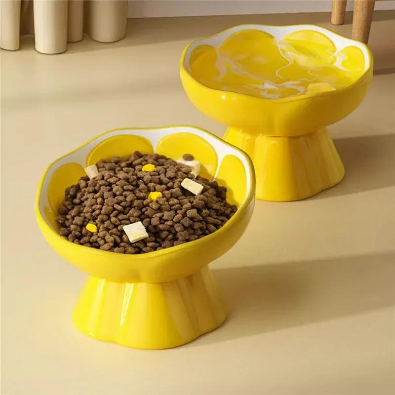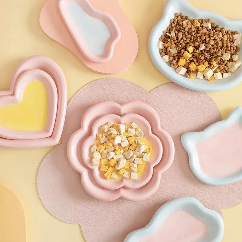 Ceramic Pet Bowl with Stand - Candy Color Dish for Small Dogs and Cats