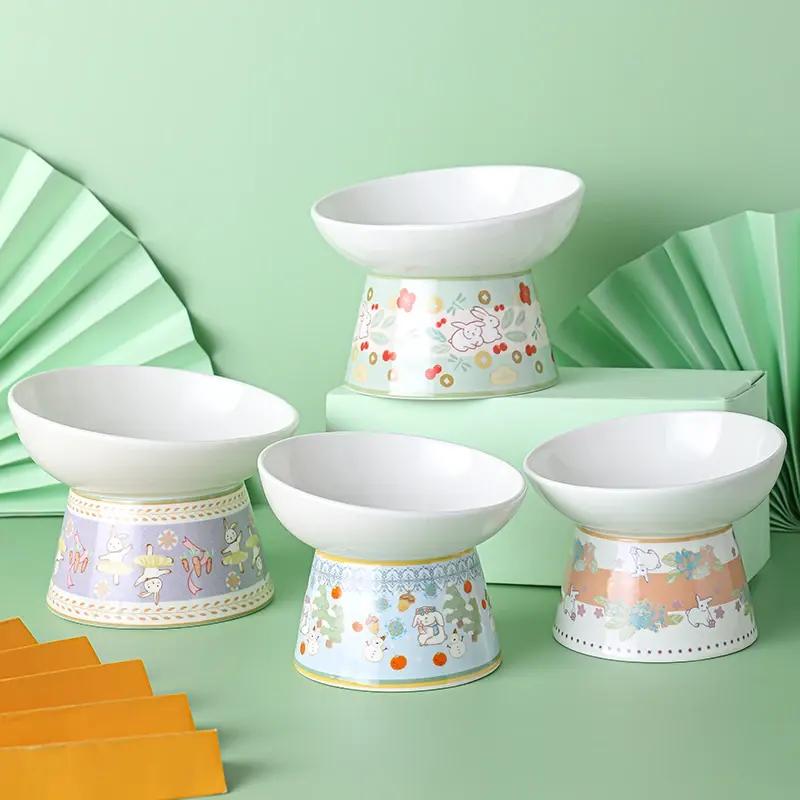 Chinese Style Ceramic Cat Bowl - Elevated Pet Food and Water Feeder