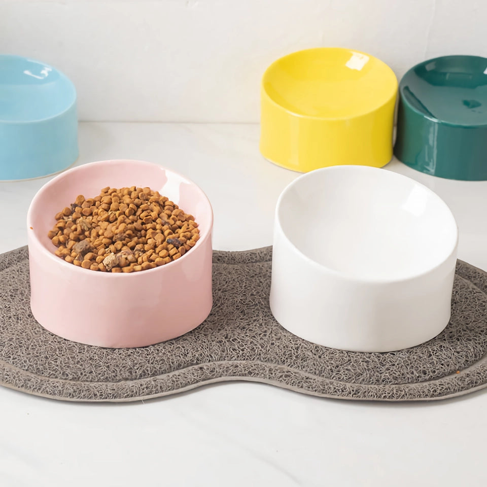 Elevated Ceramic Bevel Bowl for Cats and Dogs - Protects Cervical Spine
