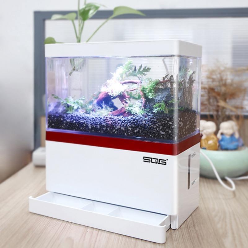 Compact Aquascape USB Fish Tank with Adjustable LED Lighting & Automatic Filtration