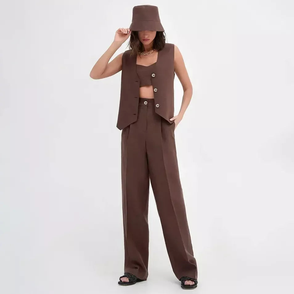 Step into a world where fashion meets functionality with our Chic Cotton-Linen Blend Sleeveless Vest and Wide-Leg Pants Set. It's more than an outfit; it's a lifestyle choice. Elevate your wardrobe now and embrace a look that's as individual as you are.