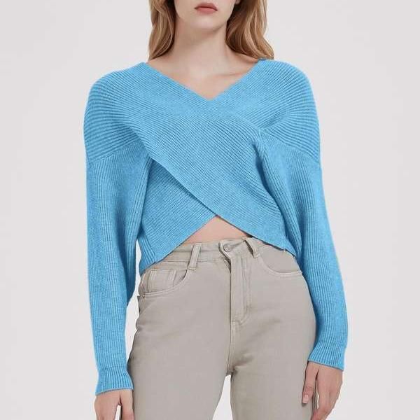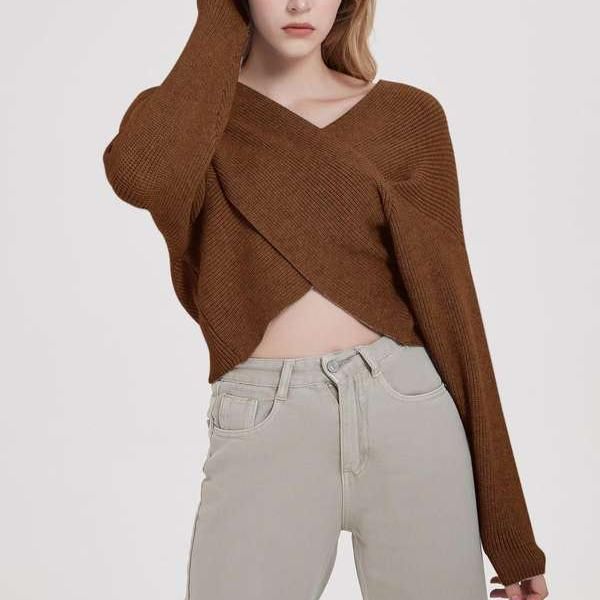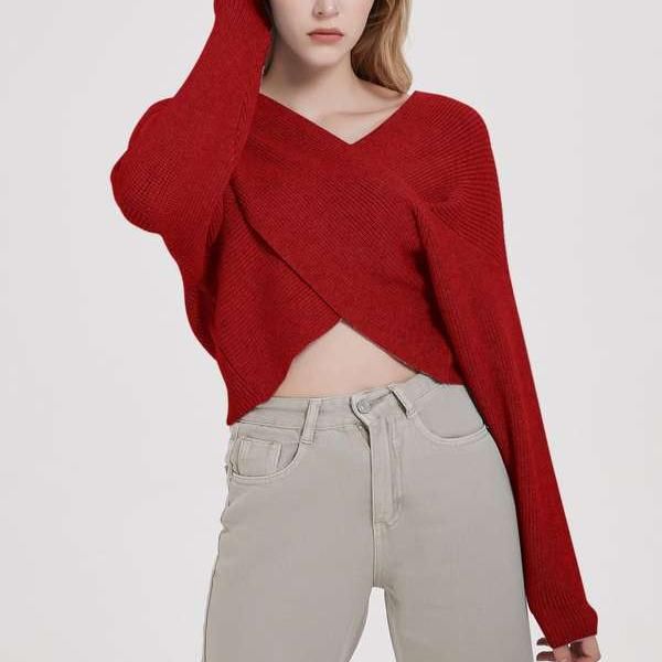 Whether you're strolling through the city, meeting friends for a coffee date, or simply enjoying a relaxing day at home, our Cross V-neck Knitted Sweater is your go-to choice. The regular thickness provides just the right amount of warmth, making it suitable for a variety of occasions. Embrace the versatility of this sweater as it effortlessly transitions from day to night. The loose fit allows for easy layering, making it a wardrobe essential for all seasons. Pair it with your favorite jeans for a laid-back look or dress it up with a skirt for a more polished ensemble.