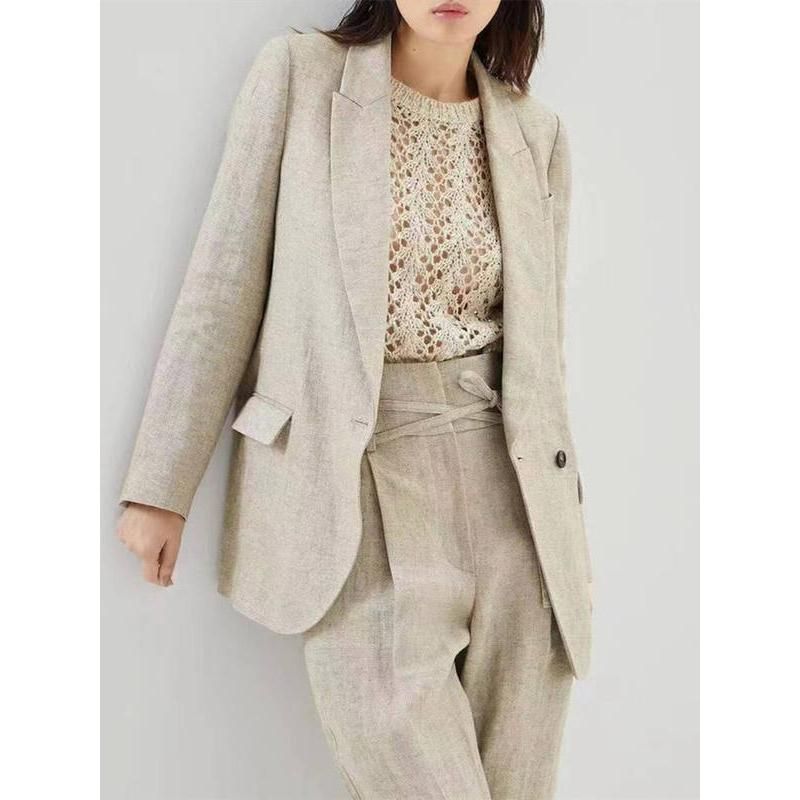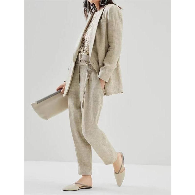 Elegant Cotton Linen Women's Blazer and Pants Set