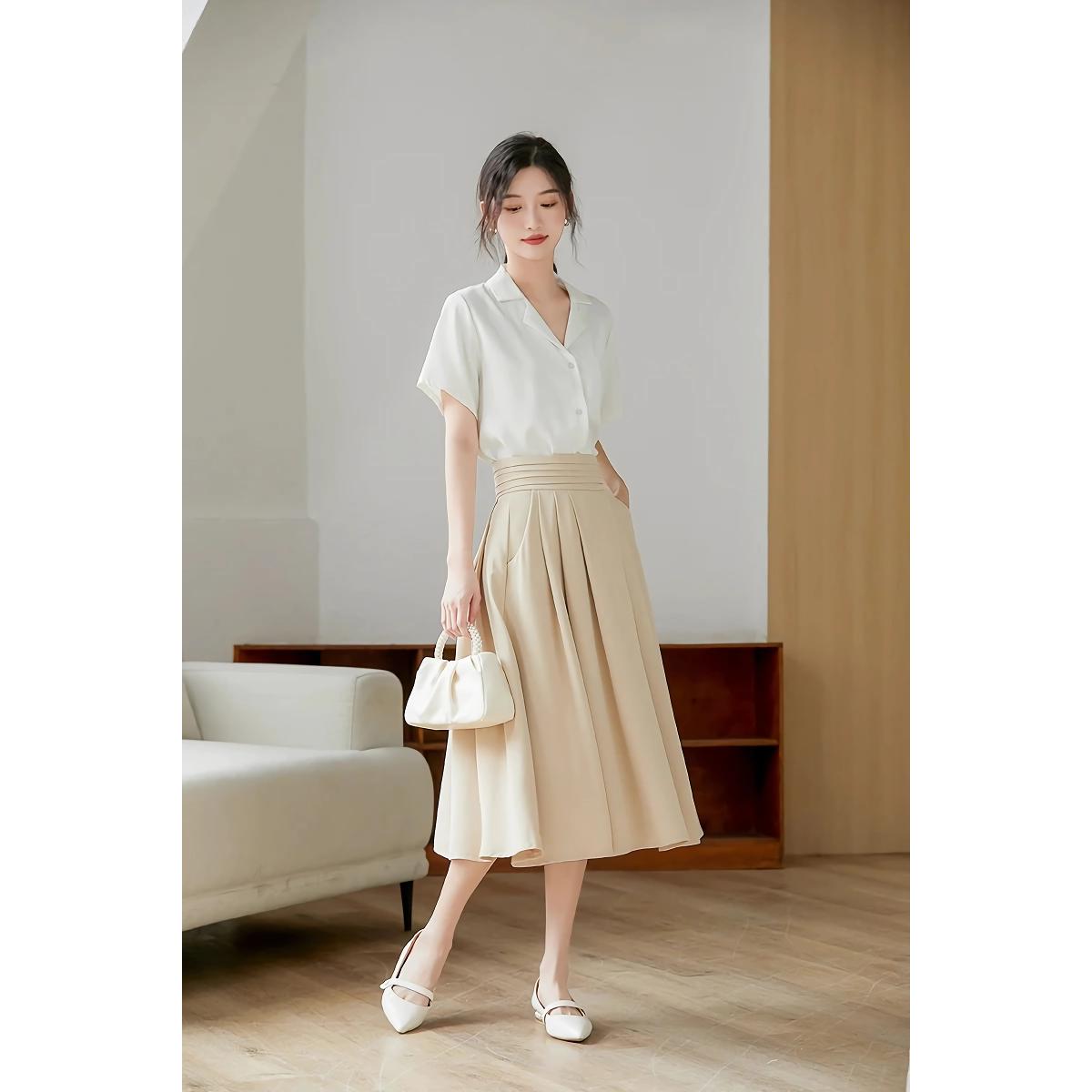 Introducing the Elegant High-Waisted Pleated Skirt with Pockets, a must-have addition to your wardrobe that combines classic style with contemporary flair. Perfect for women who appreciate a blend of casual elegance and practical design, this skirt is your go-to for both professional and casual occasions.