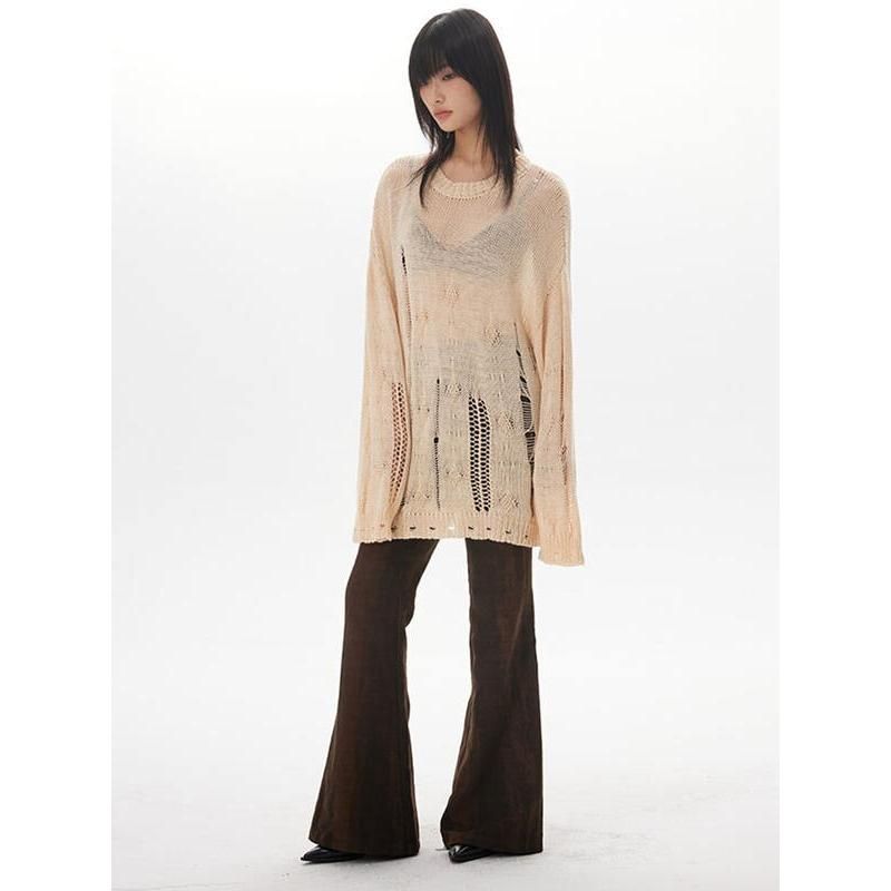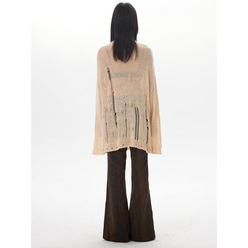 Our sweater features a loose-fitting design, made with coarse yarn that's ideal for Autumn and Winter seasons. The standard thickness provides warmth without the bulk, ensuring you stay comfortable and stylish. With its solid pattern and high street style, the sweater is versatile enough to pair with any outfit. The cut-out decoration adds a trendy twist, while the blend of polyester and cotton ensures durability and slight stretch for a perfect fit. The O-neck collar and full-length sleeves complement the regular clothing length, making it suitable for various body types.