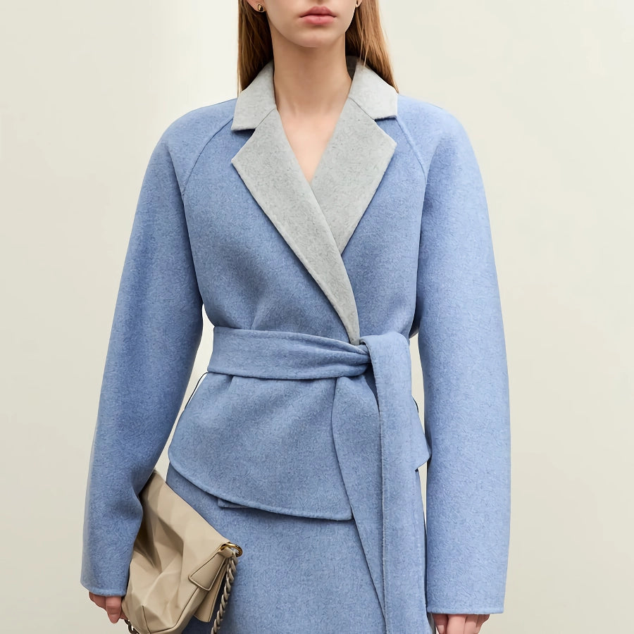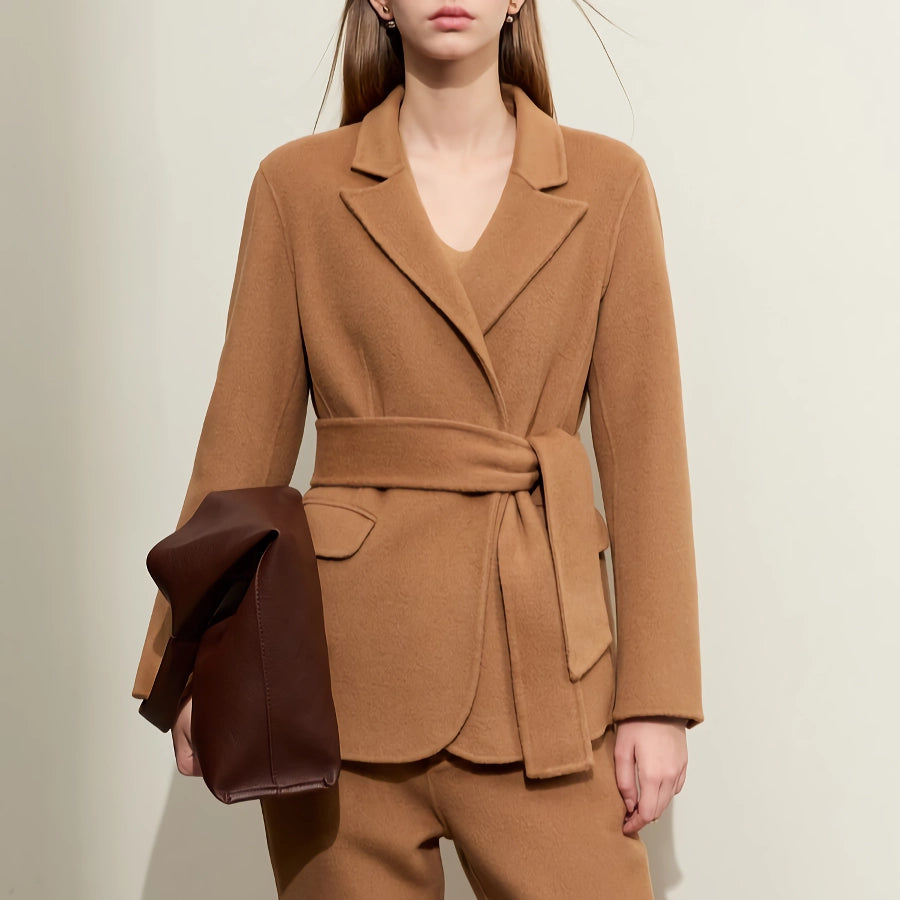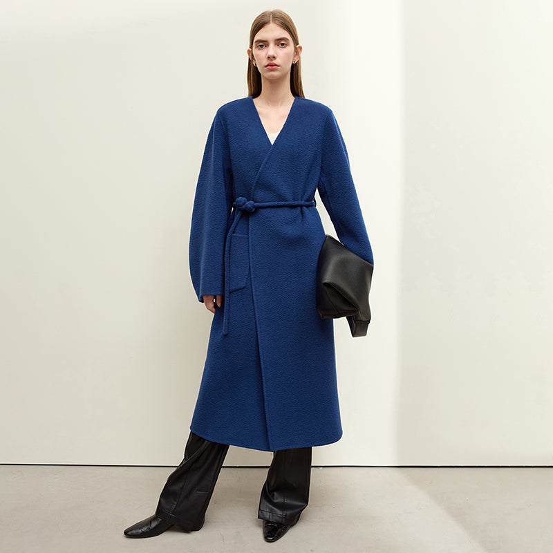 Minimalist Women's Wool Coat with Lace-up Belt - Elegant and Warm