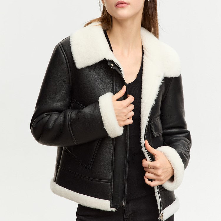 Minimalist Vintage Faux Leather Warm Jacket for Women