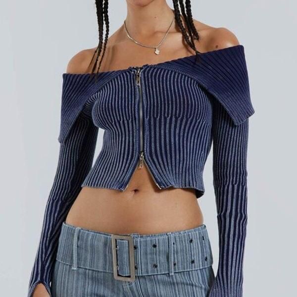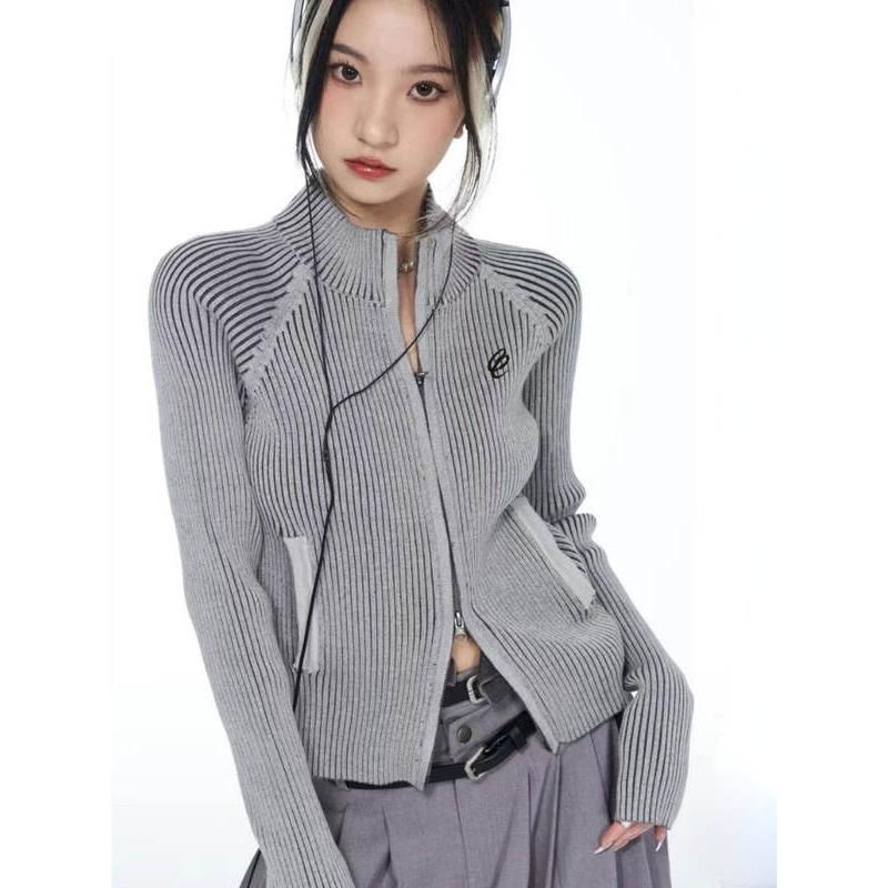 Women's Slim Fit Knitted Cardigan with Two-Way Zipper and Flash Stripes
