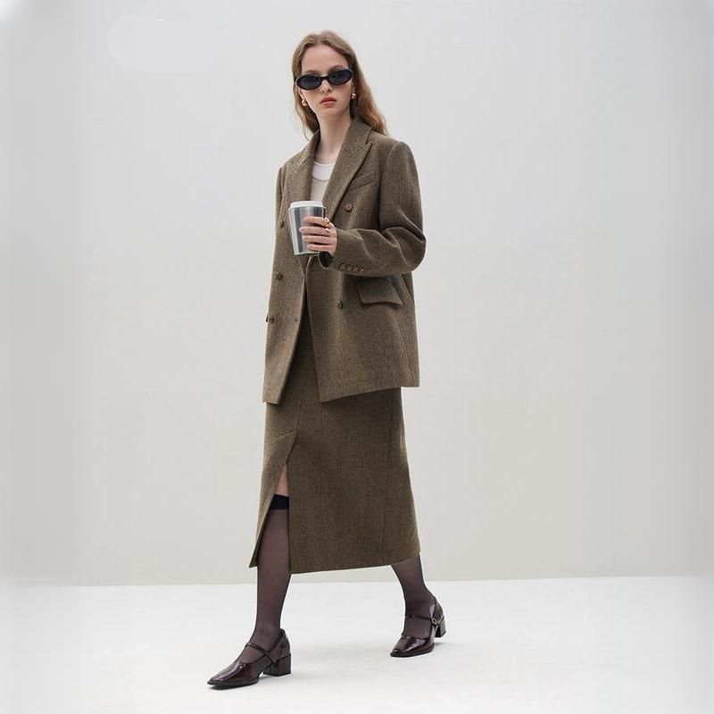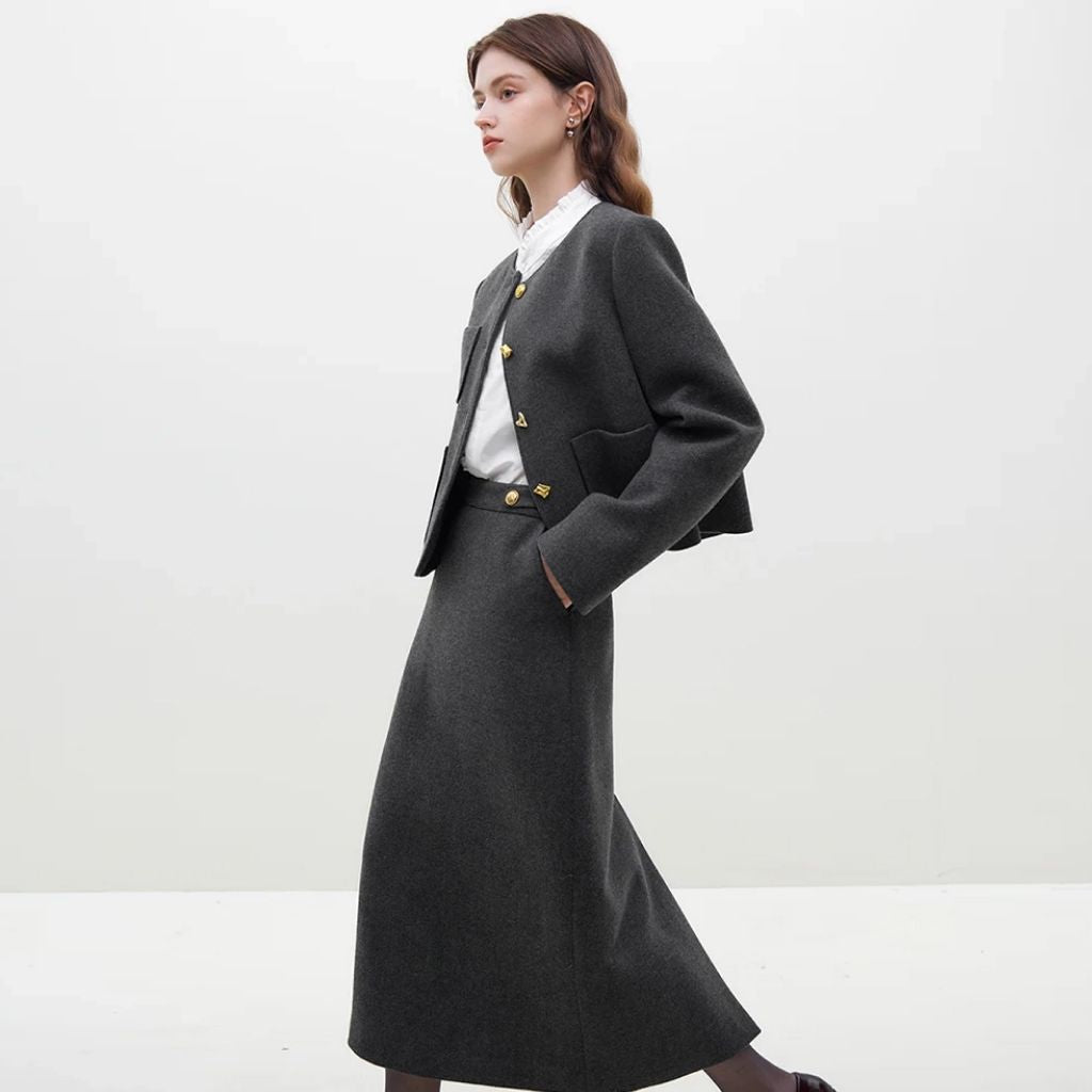 Korean Style Woolen Coat + Skirt Set for Stylish Women