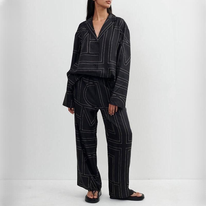 Women's Chic Geometric Print Pajama-Style Shirt and Trousers/Shorts Set