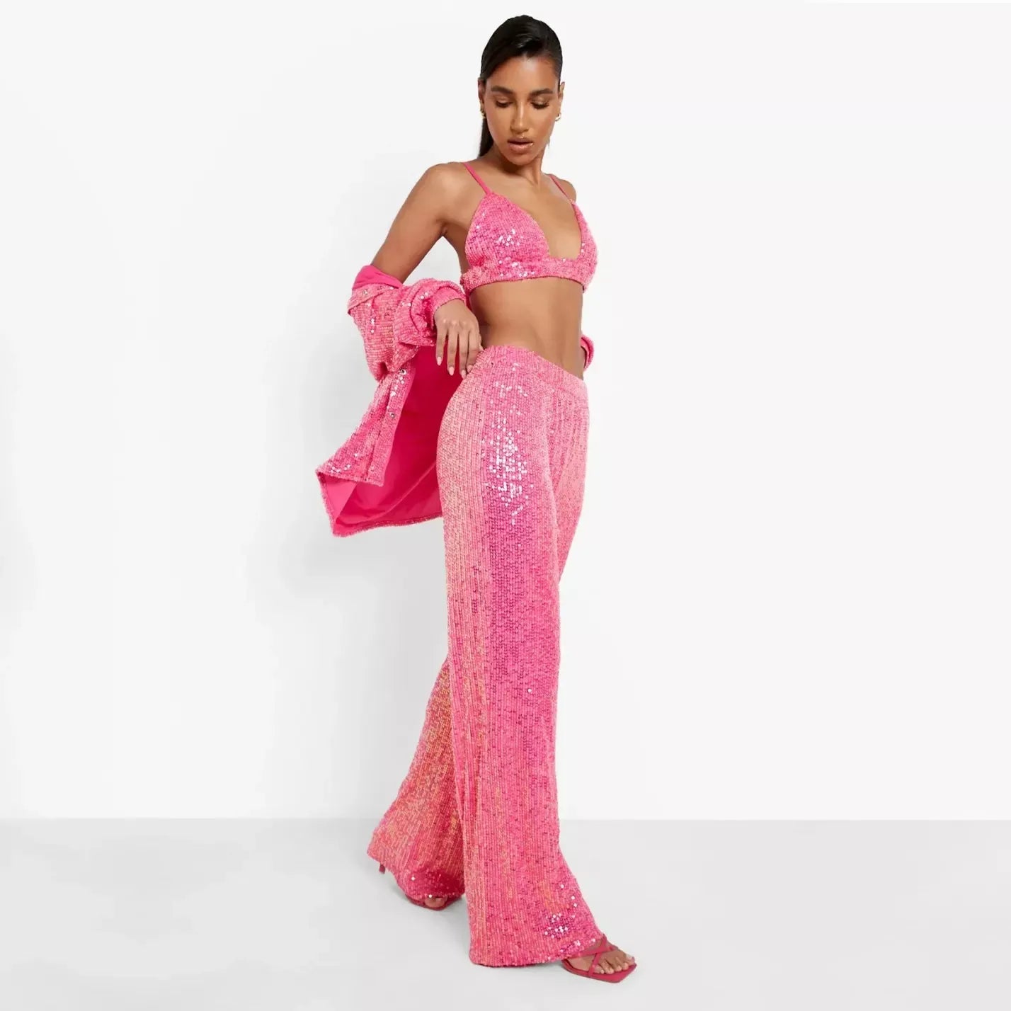 Elegant Designer Women's Beaded Blazer and Flare Pants Suit Set