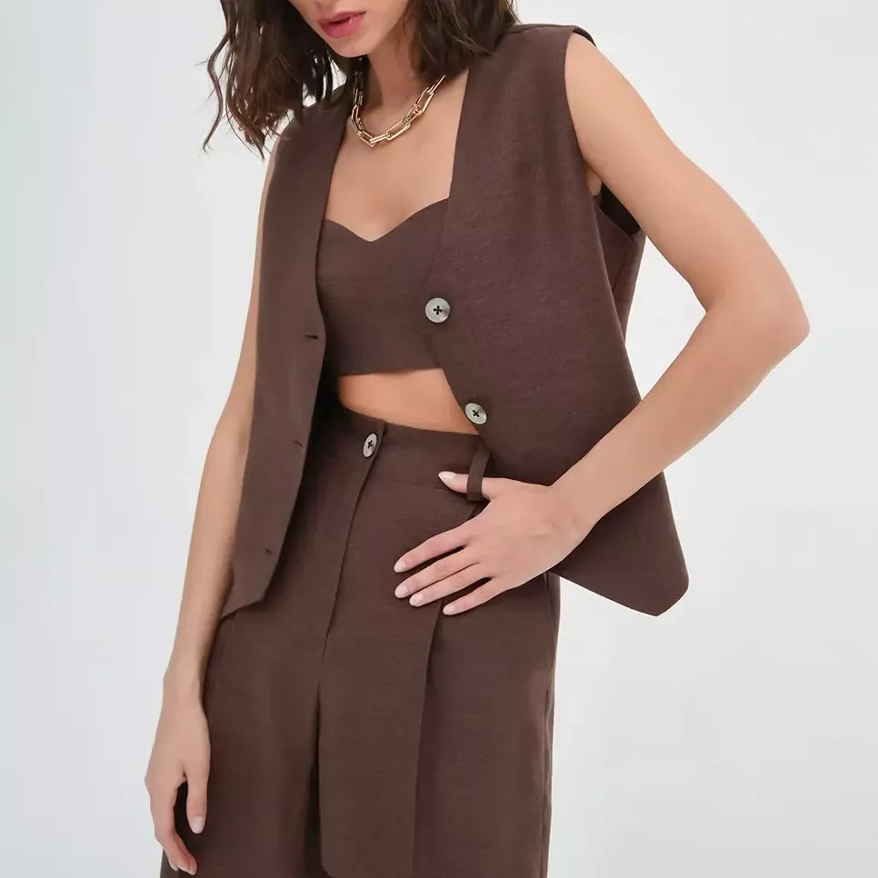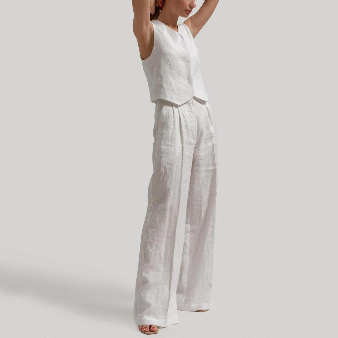 Chic Cotton Linen Summer Vest & Pants Set for Women