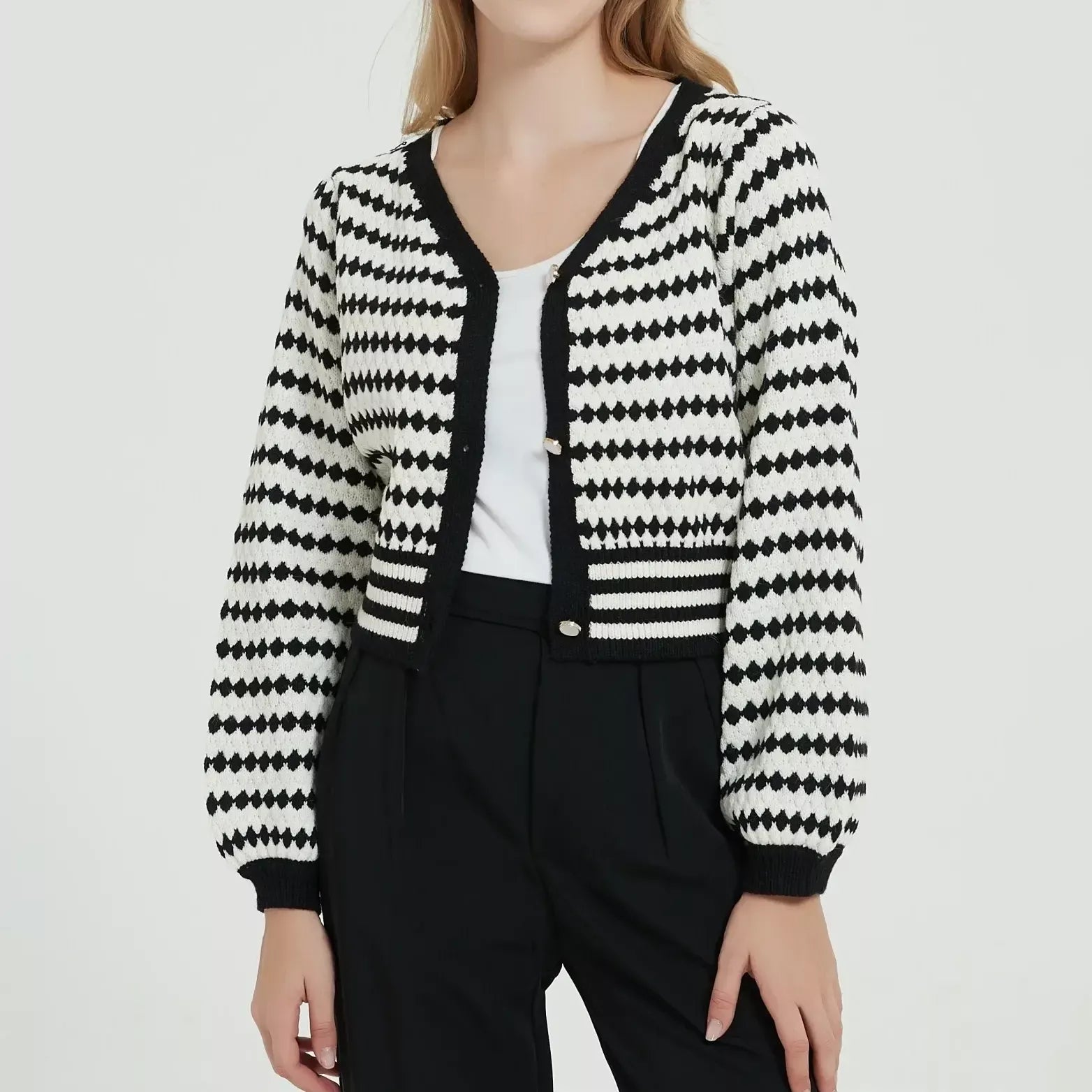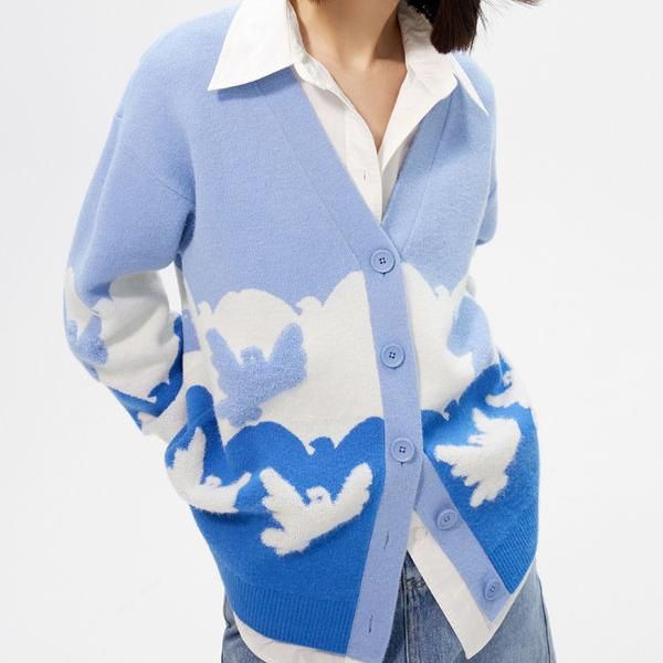 Chic Autumn Women's V-Neck Knit Cardigan with Elegant Pigeon Pattern