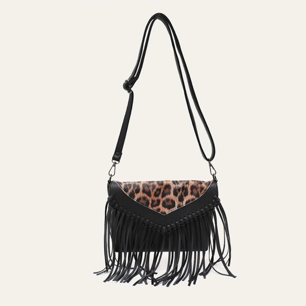 Bohemian Animal Print Crossbody Bag with Tassel Fringe