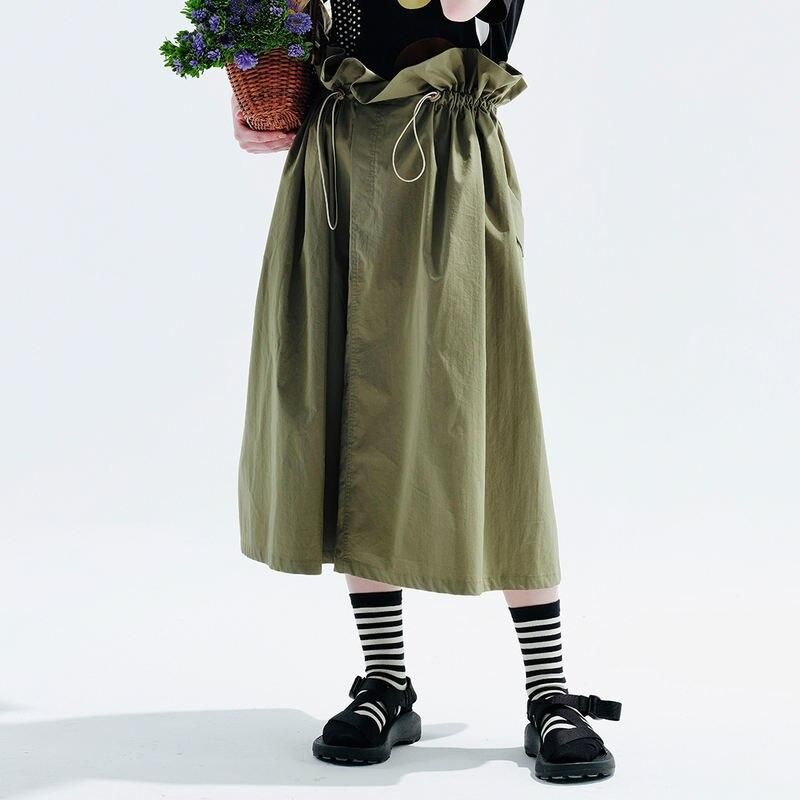 Autumn Vintage High Waist Denim Cargo Skirt with Pockets