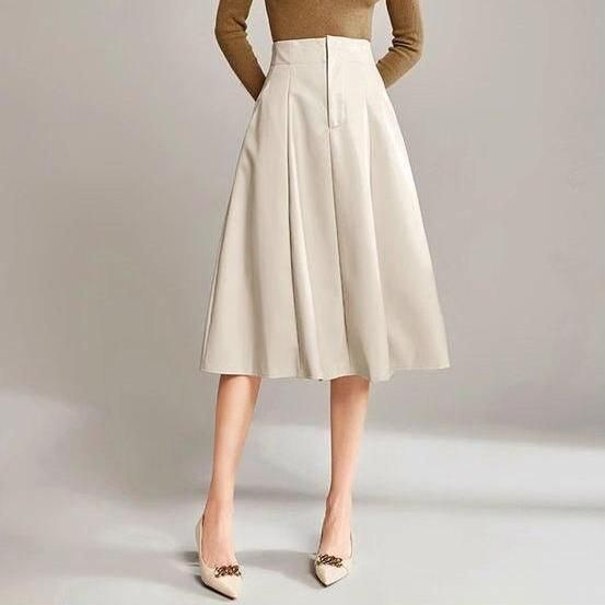 Women's Mid-Calf Pleated A-Line Work Dress Skirt