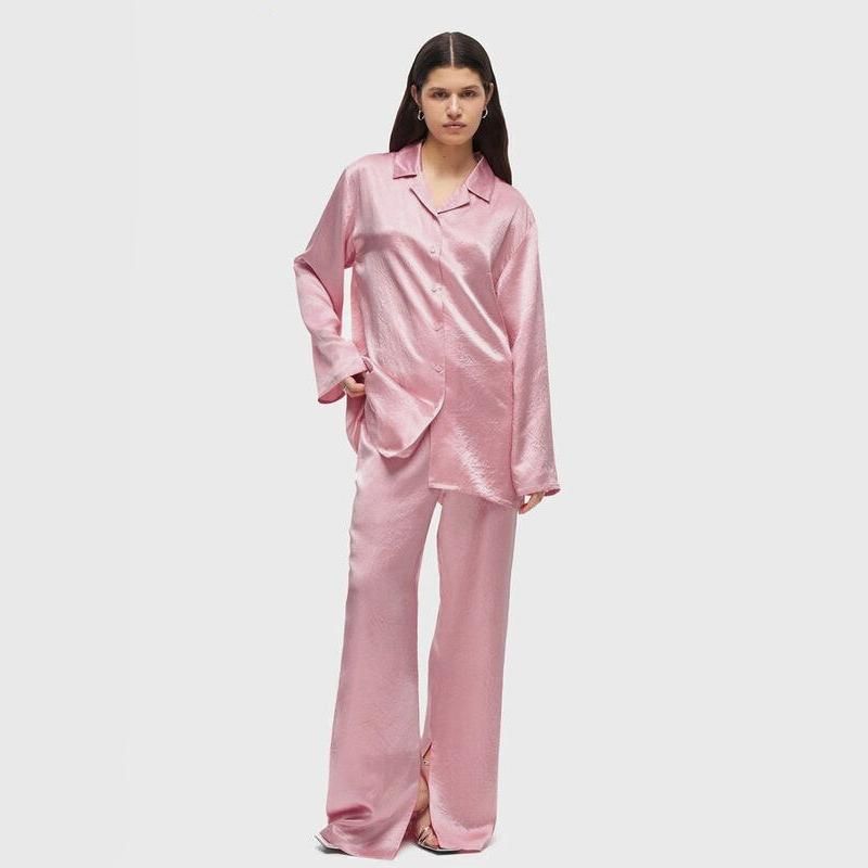 Elegant Two-Piece Set: Long Sleeve Shirt & High Waist Wide Leg Pants