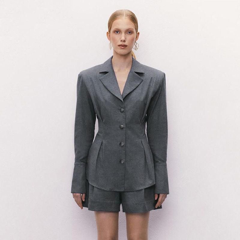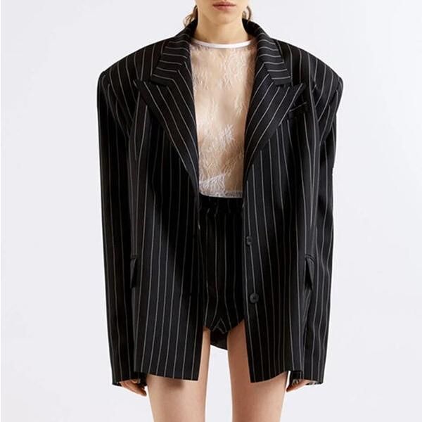 Elegant Stripe 2-Piece Set: Long Sleeve Blazer & High Waist Shorts