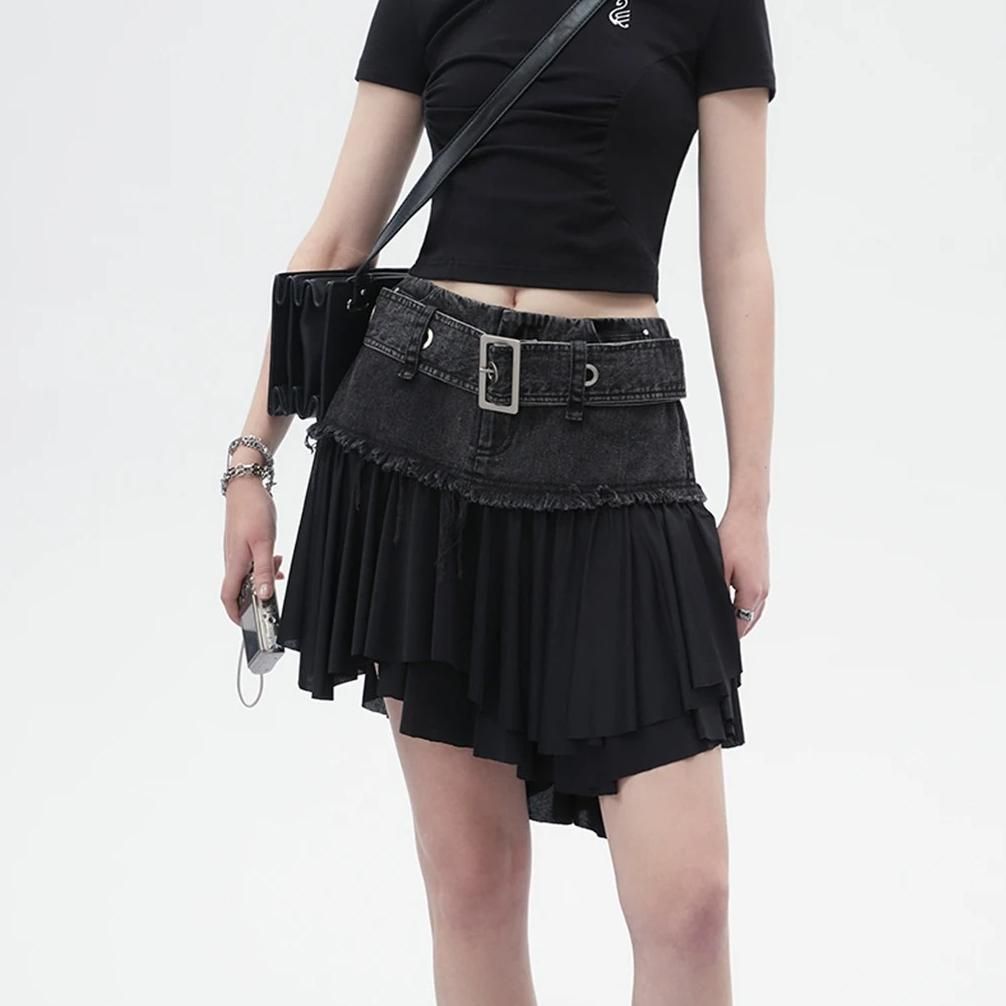 High Waist Asymmetrical Black Faux Leather Mini Skirt