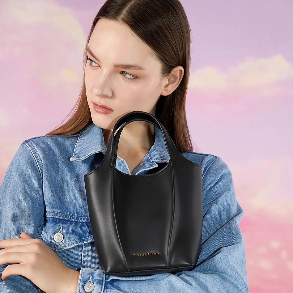 Genuine Leather Circular Shoulder Bag with Arc Profile