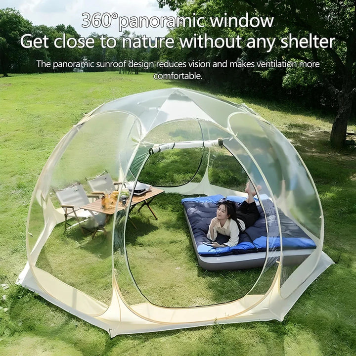 This tent is perfect for those who love to immerse themselves in nature without sacrificing comfort. The transparent design allows you to enjoy the scenery from the comfort of your tent, making it ideal for stargazing, wildlife watching, or simply soaking in the views. The thickened PVC material and robust construction ensure you stay protected from the elements, while the breathable design keeps you comfortable in various weather conditions.