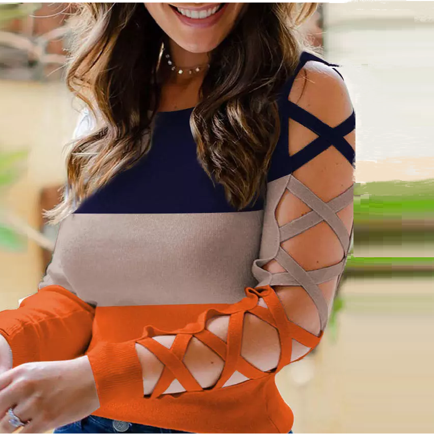 Women's Cross Sleeve Color Contrast Fit Versatile Top